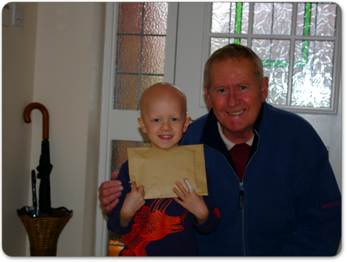 This is my friend, Geoff Falland. He held a musical event near to where I live and raised lots of money to help me get better. I couldn’t go to see him play because I was in hospital. He came around the next day though to give us the money he had raised. I thought he was a very nice man and that it was very kind of him to help me.