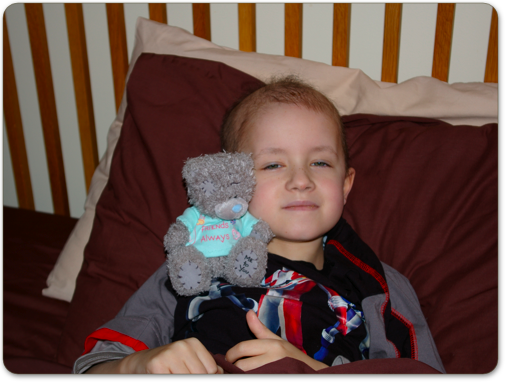 Jacob is now on constant morphine to control his pain. At first this made him very sleepy and for a few very upsetting days days we wondered if we would ever see our usual happy Jacob again. However, we were told that his body would adjust to the morphine and that he would become more alert. By Boxing Day, Jacob became almost his usual self, telling jokes and making us all laugh.